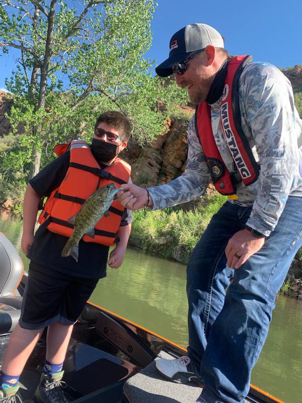 Centennial Bass Club helps sponsor a special event to allow disabled kids take advantage of fishing opportunities. We as a club get together along with members of other clubs and take disabled children fishing.